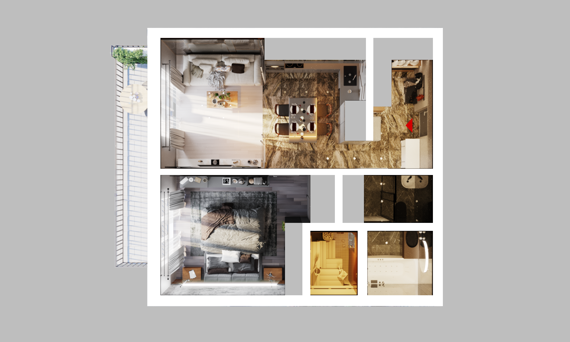 Индивидуальные открытые террасы. Больше пространства - ваш уголок свободы в сердце города. Отдыхайте с потрясающими видами и свежим воздухом.