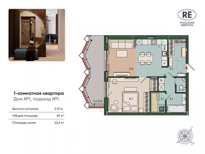 - Высота потолков 3.15 м