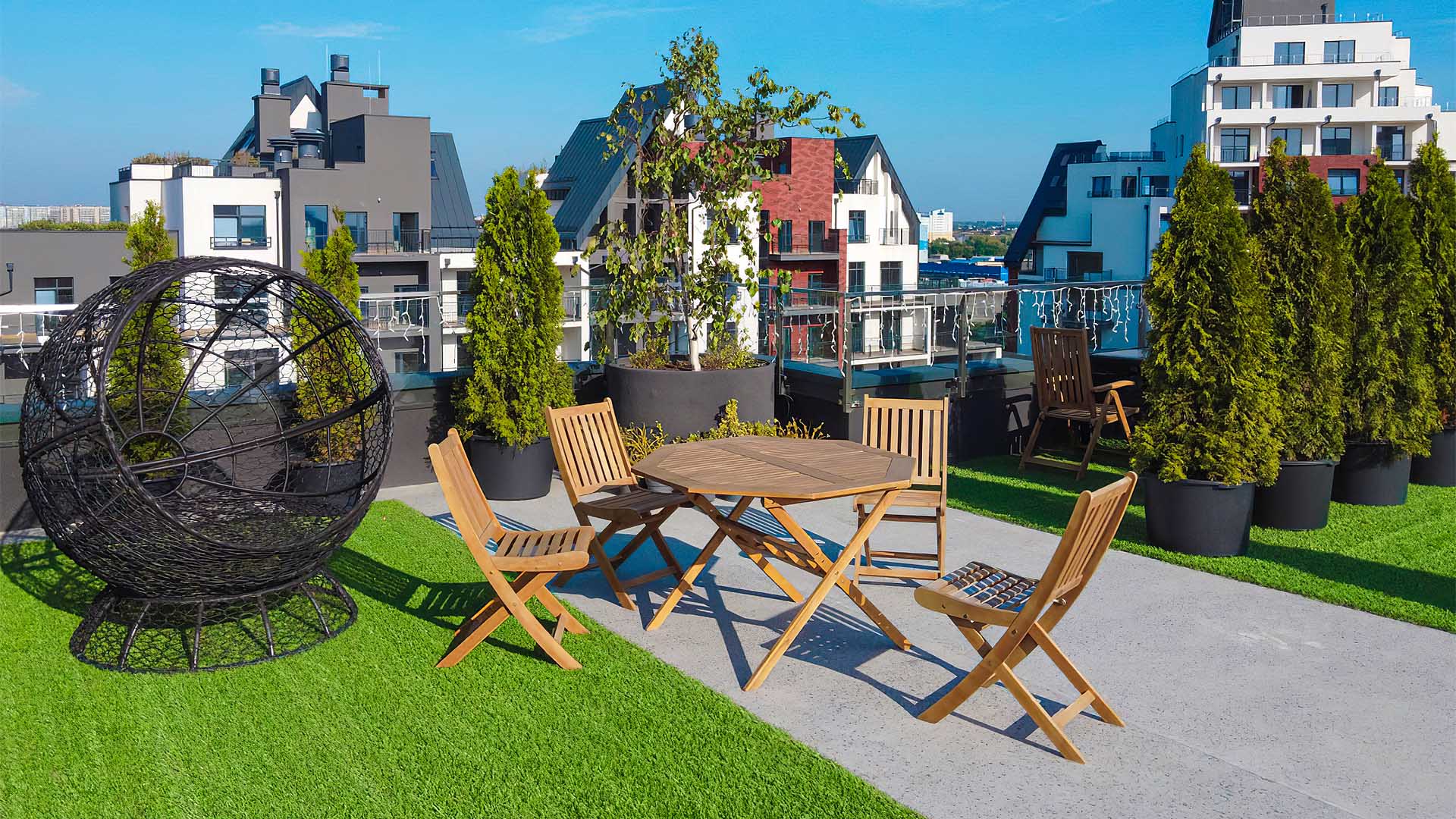 - Эксплуатируемая кровля — на крыше многоквартирного дома должна быть обустроена дополнительная рекреационная зона.